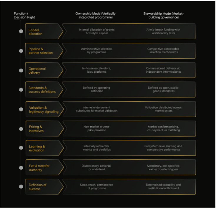 The alternative is stewardship-oriented innovation support: programmes designed to build markets and capability rather than institutional ownership of innovation infrastructure.